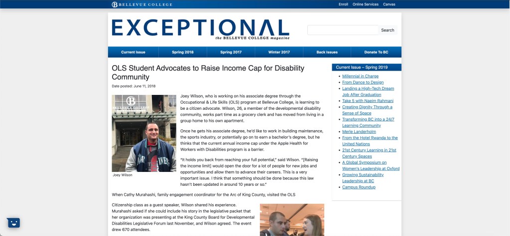 This story was initially shared as an OLS news story, but it was picked up by three publications: two local news publications and the Bellevue College Exceptional Magazine.